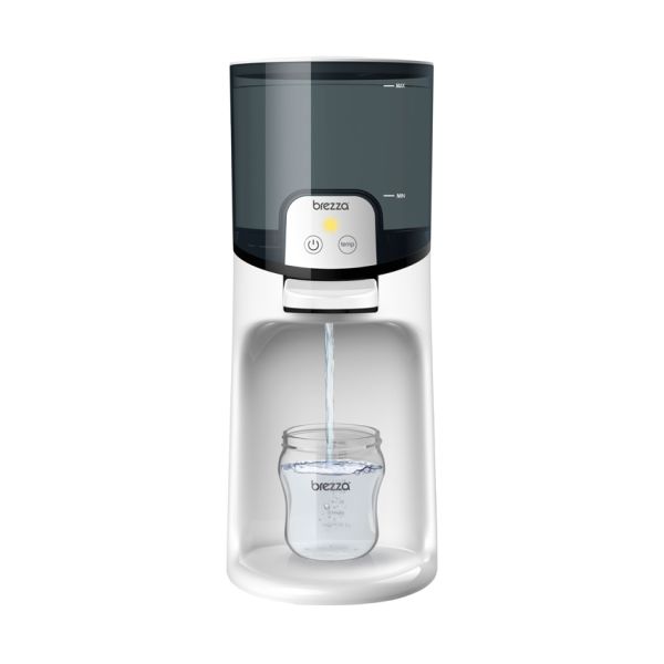 De Baby Brezza Instant Warmer - Black-White zorgt ervoor dat je altijd direct warm water klaar hebt voor een babyflesje. Deze stijlvolle flessenwarmer verwarmt water continu en houdt het op een ideale temperatuur, zodat je met één druk op de knop direct een fles kunt vullen.