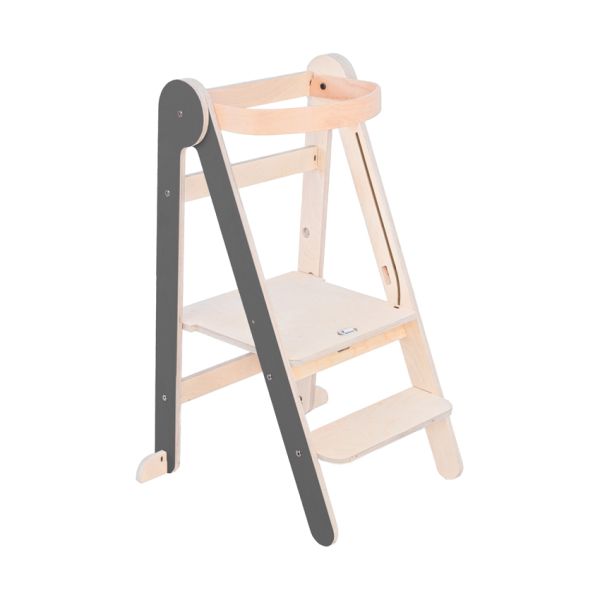 Met de Mamatoyz Leertoren - Grey Color - Hout staat je kindje veilig op hoogte en doet het spelenderwijs mee in de keuken. De leertoren is in hoogte verstelbaar en geschikt voor kinderen van 12 maanden tot ongeveer 5 jaar. Deze stevige houten leertoren heeft een moderne uitstraling en biedt dankzij het naar buiten openende onderstel extra stabiliteit. De toren weegt slechts 6 kg, is getest tot 50 kg en voldoet aan de EN 71-normen. Montage is eenvoudig en snel geregeld. Dankzij de handige vouwfunctie is de leertoren compact op te bergen en makkelijk te verplaatsen. Ideaal voor gezinnen met beperkte ruimte of voor gebruik in meerdere kamers.