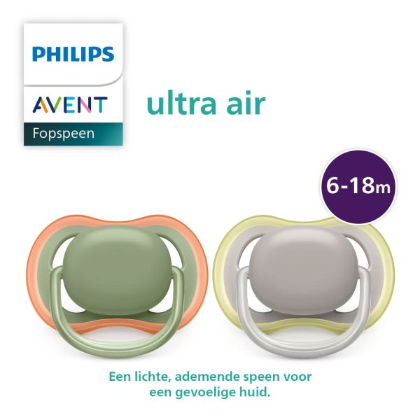 Philips Avent Ultra Air Fopspeen - Symmetrisch - 2 Stuks - 6-18 Mnd - Groen/Grijs